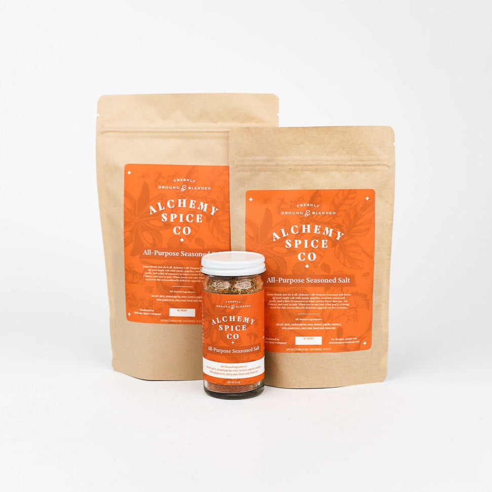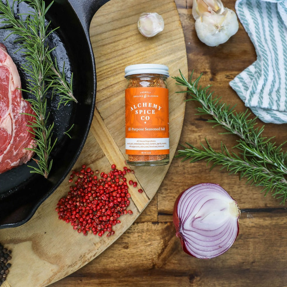 Some blends just do it all. Alchemy’s All-Purpose Seasoned Salt kicks up your staple salt with smoky paprika, aromatic onion and garlic, and a hint of rosemary to inject savory flavor into any dish. Unfussy and easy to pair. When you’re not sure what you’re craving, reach for this extraordinarily delicious upgrade on the everyday.