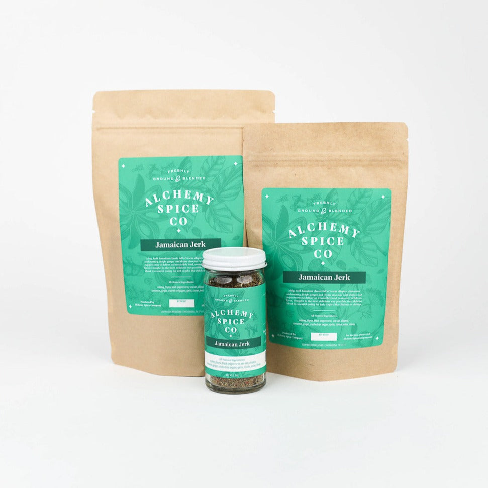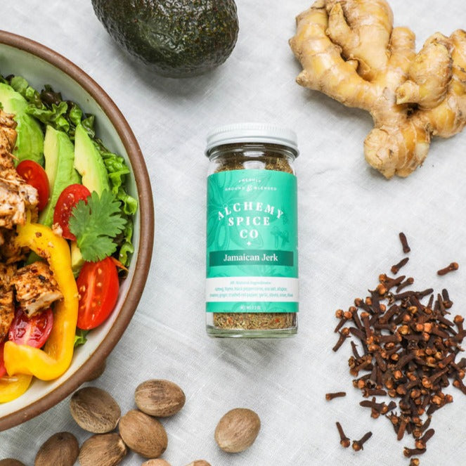 A big, bold Jamaican classic full of warm allspice, cinnamon and nutmeg. Bright ginger and thyme also pair with chilies and peppercorns to deliver an irresistibly bold, aromatic Caribbean flavor. Complex in the most delicious way possible, this Alchemy blend is essential eating for jerk staples like chicken or shrimp.