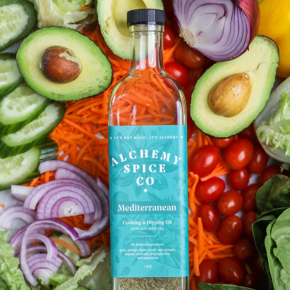 The sunny soul of cooking. Alchemy’s Mediterranean blend brings fragrant rosemary and sage together with savory garlic and greens to honor a region that’s given so much to cooking. Coriander lends to the bright flavor, making this an excellent complement for fish, chicken or veggies.